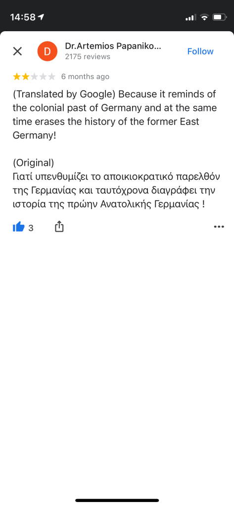 During the period of the residency the object of my interest turned to the Humboldt Forum, a new museum space that opened during my residency on 20 July 2021. The highly controversial project had initially been billed as Germany’s answer to the British Museum, through its amalgamation of Berlin’s ethnographic collections.