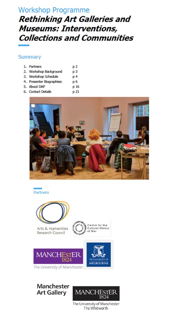 I presented a paper on my museums research at the University of Manchester-AHRC-Manchester Art Gallery ‘Rethinking Art Galleries and Museums: Interventions, Collections and Communities’ workshop on 22 January 2022.