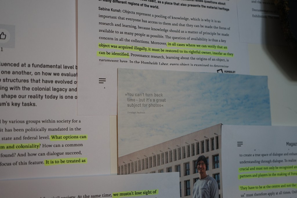 Towards the end of my residency at ZK/U Berlin in August 2021, I presented my work in the form of a studio exhibition, ‘The Late Museum’, which considered the city’s recently opened Humboldt Forum.