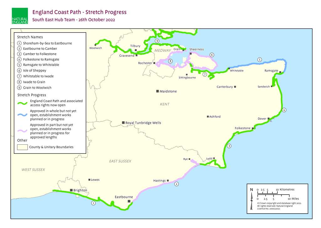 England Coast Path (South East) trail development progress, October 2022. Source: Natural England.